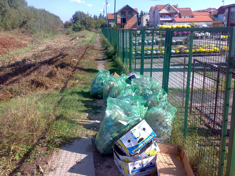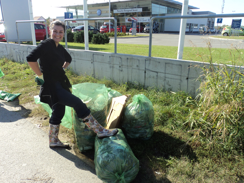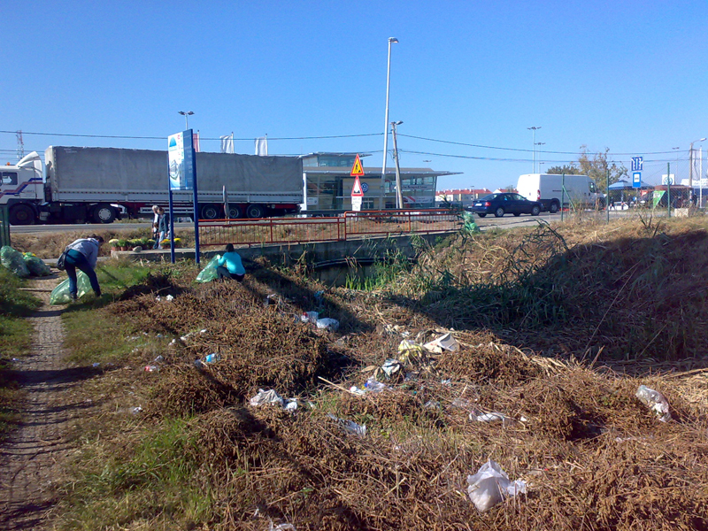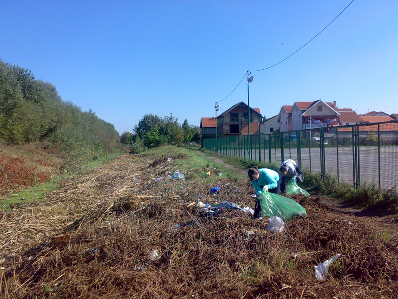 Слике са еколошке акције „Очистимо прилазе панчевачком мосту“, 15.10.2011. године